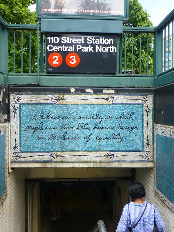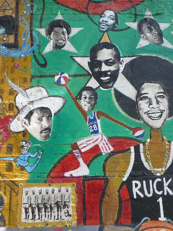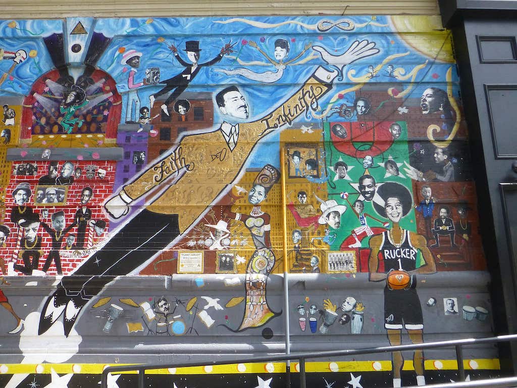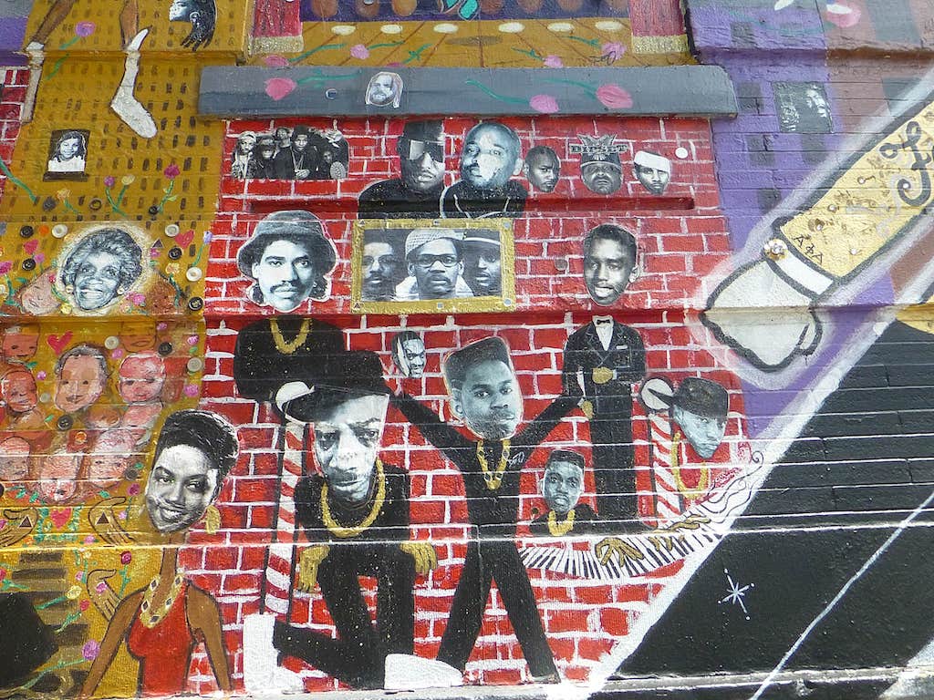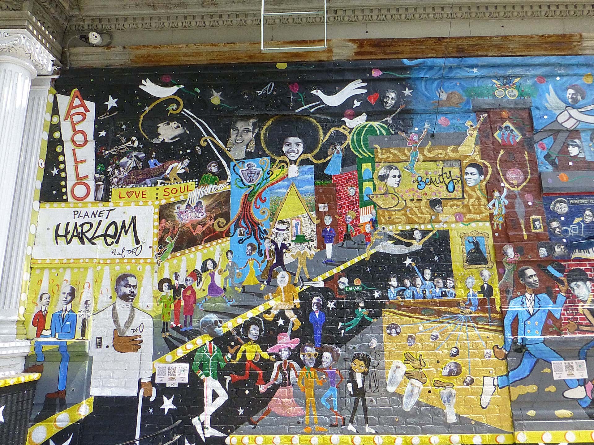 Si d’aventure – le sens premier ne se justifie plus – vous parcourez Harlem à la hauteur de la 125e rue depuis la station de métro souterraine en direction de l’Apollo, entièrement rénové et pimpant, avec un trottoir transformé en Hall Of Fame, vous pourrez admirer des peintures murales dédiées à l’affirmation de l’identité afro-américaine.