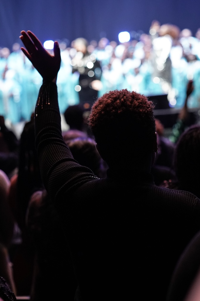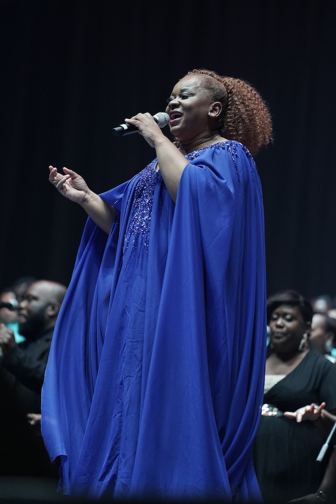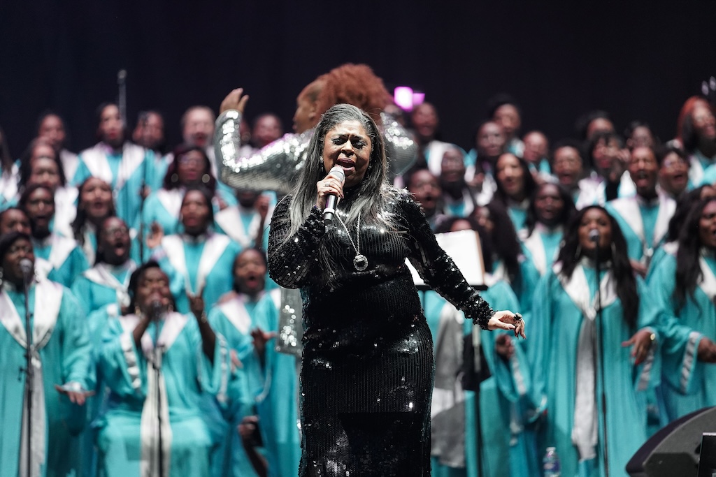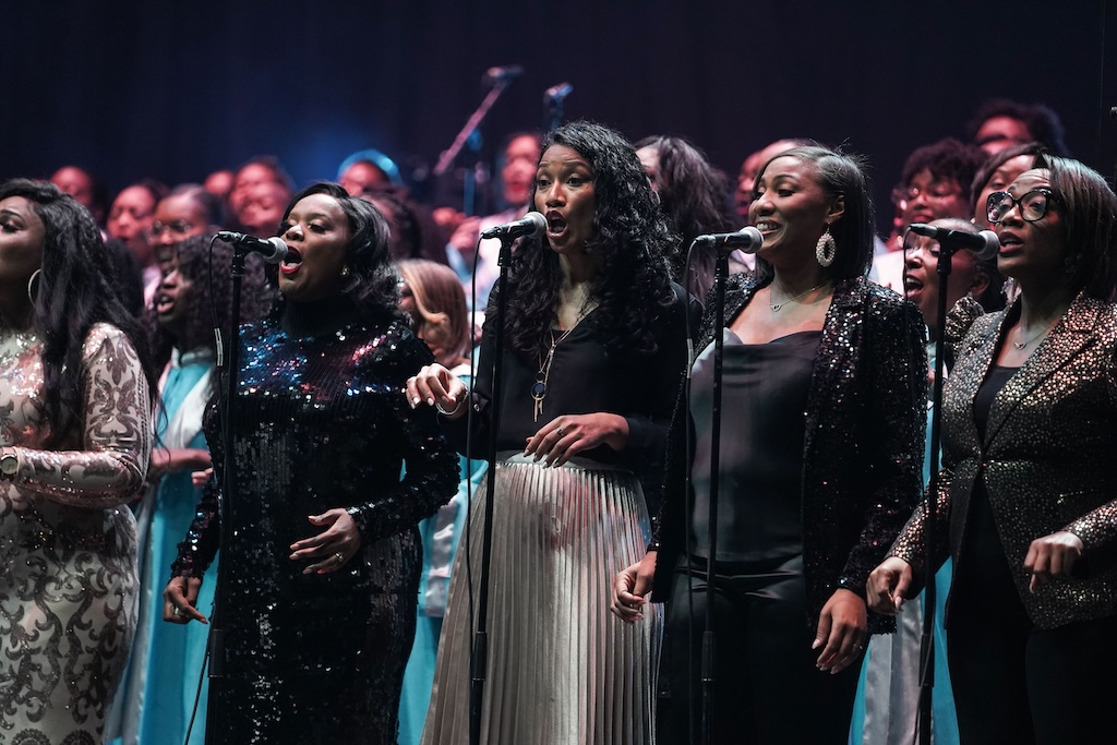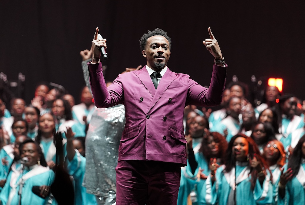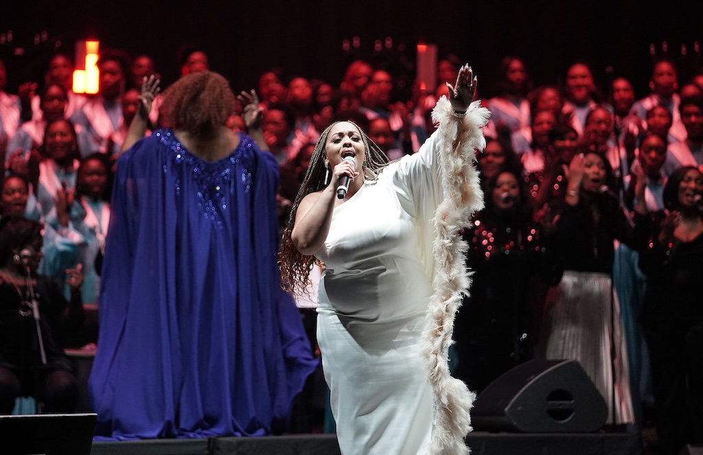 Le pari, audacieux, est une réussite, et la salle est copieusement remplie quand les lumières de la scène s’allument pour révéler un casting impressionnant : les 200 chanteurs du Total Praise Mass Choir sous la direction d’Isabelle Ngombo, un orchestre piloté comme d’habitude par Théophane Koffi renforcé pour l’occasion par le pianiste et arrangeur Kevin Bond, collaborateur régulier depuis les années 1980 d’Edwin, Walter et Tramaine Hawkins, Stephanie Mills et Kirk Franklin récompensé plusieurs fois aux Grammys, et même une section de cordes conduite par l’arrangeur et chef d’orchestre Matt Jones, entendu sur disque avec Ledisi, John Legend et PJ Morton, entre autres ! Dès les premiers morceaux, interprétés par des solistes habituels de la chorale – Wesley Seme, Olivia Songeons, Crécilia Nonirit, Nathalie Colomb – rejoints sur quelques titres par une troupe de danse, la puissance de feu de l’ensemble est évidente, d’autant qu’elle est canalisée par des arrangements de grande qualité qui ne sacrifient pas le goût de la nuance à l’efficacité.