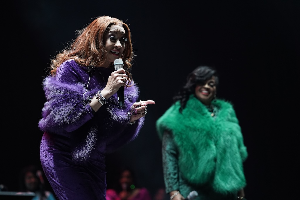 L’enthousiasme n’a pas eu le temps de retomber qu’arrivent sur scène les stars de la soirée, les Clark Sisters, qui fêtent cette année les 50 ans de leur premier album et ne s’étaient jamais produites sur une scène française. Petite surprise : les frangines ne sont que trois ce soir – Jacky, Dorinda et Karen – et Twinkie, bien  qu’elle fut prévue, n’est pas de la partie, sans que son absence soit expliquée. La déception est cependant de courte durée, tant le trio livre une prestation de haute volée. C’est Karen Clark Sheard, qui avait déjà participé en solo au festival en 2019, qui assure le chant principal, mais ses deux sœurs ne sont pas en reste, chacune avec son style particulier, et leurs harmonies, polies depuis l’enfance sous l’influence de leur mère, la légendaire cheffe de chœur Mattie Moss Clark, sont évidemment impeccables. Malgré l’heure tardive, personne ou presque n’a songé à s’en aller, et le public, connaisseur et enthousiaste, a renoncé à s’asseoir tout au long d’une prestation parfaitement réglée, qui revisite les principaux titres de la carrière de l’ensemble, mêlant aussi bien classiques comme Wonderful counselor que tubes plus récents comme Livin’, qui ouvre leur prestation, ou Victory