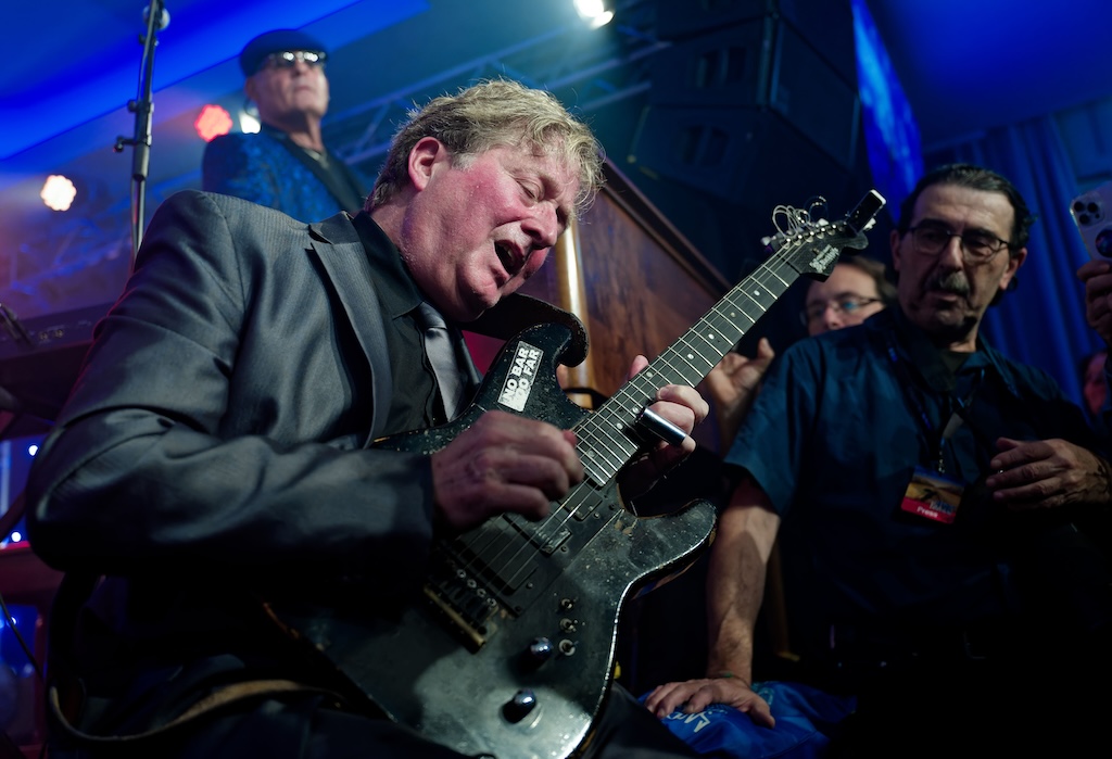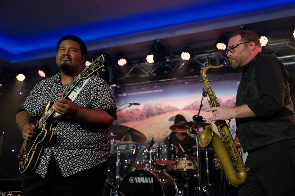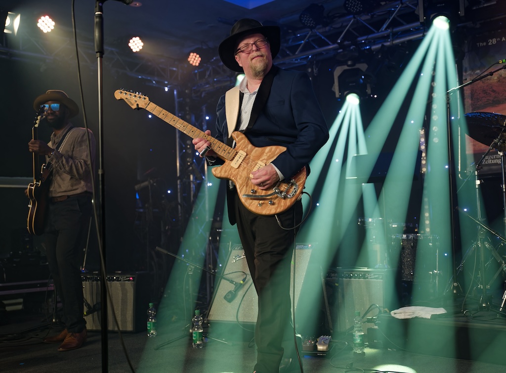 C’est Sean “Mack” McDonald, le jeune chanteur-guitariste d’Augusta, Géorgie, qui ouvre les hostilités ce jeudi et il bénéficie en backing band de la crème de la scène d’Austin, autrement dit The Texas Horns avec Kaz Kazanoff (sax ténor), Al Gomez (trompette), John Mills (sax baryton) et les frères Moeller (Johnny, guitare ; Jason, batterie), plus Nick Connolly (claviers) et Michael Archer (basse), venus pour accompagner le lendemain Stan Mosley. Autant dire que ça pousse fort et Sean McDonald nous propose un set de reprises penchant largement vers le Sud, de Johnny “Guitar” Watson à Freddie King en passant par Fenton Robinson pour le côté guitare et de Little Milton à Bobby “Blue” Bland pour les vocaux. La guitare est fluide et dynamique, elle est parfois délaissée par Sean devenant chanteur et showman avec le support de Johnny Moeller à la guitare rythmique et solo. Le jeune homme, que l’on verra pour la première fois en France a priori en mars 2024, est doué et globalement son positionnement stylistique n’est pas sans évoquer Kirk Fletcher, qu’il a d’ailleurs côtoyé sur les scènes de Nashville lorsqu’ils résidaient temporairement par hasard tous deux dans cette ville devenue un des centres importants de l’actuelle scène blues.