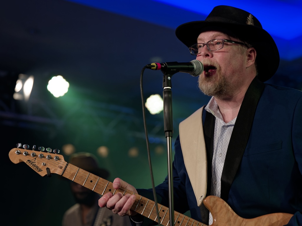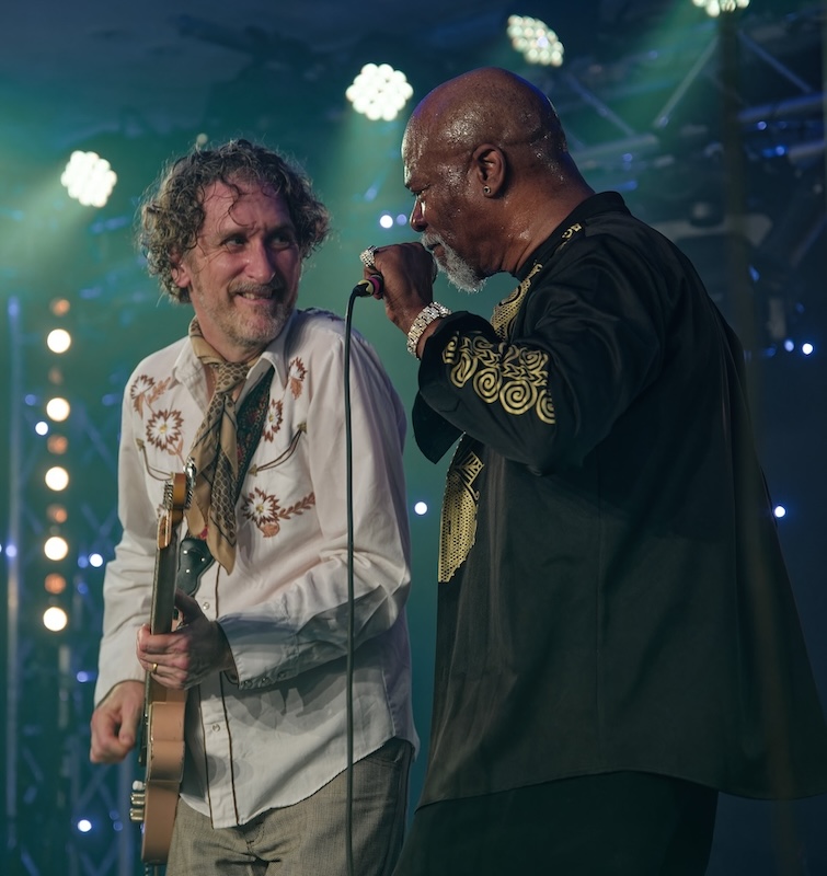 Vient ensuite la première grande sensation du festival, The Love Light Orchestra, en direct de Memphis. Ce projet initié en 2017 par John Németh (chant), Joe Restivo (guitare) et Marc Franklin (trompette) a pour ambition de montrer qu’à Memphis il n’y a pas que Sun et Stax ! Il existait en effet parallèlement une scène blues-rhythm and blues très populaire auprès du public afro-américain des années 1950 et 1960, scène qui a produit via les clubs de la ville une génération de géants du blues urbain dont les noms, Bobby “Blue” Bland, Junior Parker, B.B. King, Little Milton, ont d’ailleurs résonné tout au long du festival à travers de multiples reprises de la part de la majorité des groupes présents. Une section de cuivres de feu menée par Marc Franklin (deux trompettes, deux saxophones, un trombone) et la guitare de Joe Restivo (City Champs, Bo-Keys, Don Bryant) emmènent les morceaux interprétés vers une perfection et une efficacité remarquable, restituant ainsi le son des big bands soul blues de chez Duke ou Bobbin-Chess et fournissant un support idéal à la voix de velours de John Németh. Reprises donc, mais aussi des compos fortes telles que Time is fading fast et Come on moon issues du deuxième album, tous ces titres laissent une large place aux cuivres, le saxophone étant à l’époque l’instrument leader, mais Joe Restivo se régale et impressionne en évoquant le grand Wayne Bennett ou même son modèle et mentor, le guitariste Calvin Newborn, acteur majeur de la scène de Memphis. Un premier jour déjà proche donc de la perfection !
