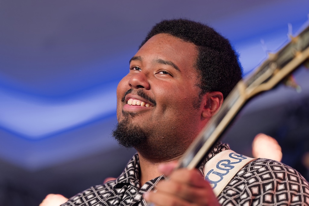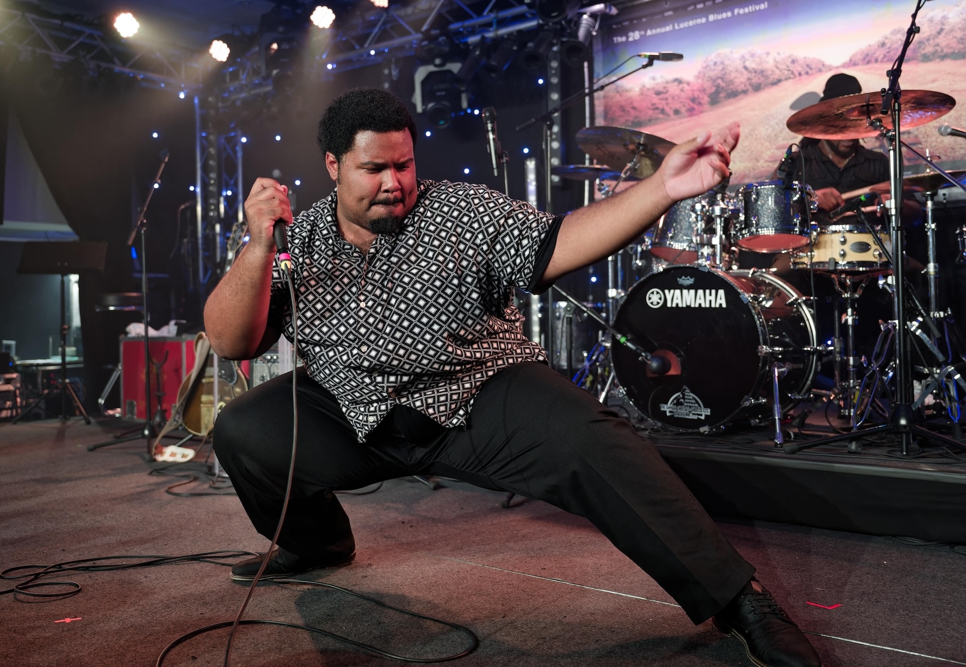 On l’attendait et on n’a pas été déçu, la révélation D.K. Harrell se présente lui aussi avec une section de cuivres affutée et une section rythmique hyper funky. Avant même son entrée sur scène, ses musiciens attaque un instru qui paraît un instant anodin jusqu’à ce que l’on réalise qu’il s’agit du thème de Still Dre de Dr. Dre avec Snoop Dogg, thème lui-même adapté de Maybe tomorrow du guitariste Grant Green. D.K. arrive et le morceau se transforme en un shuffle imparable sur lequel il place ses premières notes de guitare. Alors oui, il y a du B.B King chez cet homme-là, mais c’est surtout un showman accompli et naturel, chanteur et guitariste charmeur, sexy et terriblement funky. Ses compos respirent les influences chez lui aussi de Bobby Bland ou Little Milton, mais soudain il pose sa guitare et se transforme en chanteur soul hyper suggestif, descendant dans la salle pour charmer quelques dames, puis à son retour après quelques pas de danse spectaculaires, il durcit le ton et enchaîne deux morceaux hyper funky emmenés par son jeune batteur, excellent frappeur, pour un détour par Washington DC et la go go music façon Chuck Brown ! Le public est alors à la fois embarqué très loin et quelque part aussi surpris par ce concert très chaud alors qu’il pensait peut-être juste voir le fils spirituel de B.B. King. D.K. Harrell, c’est du grand, très grand !