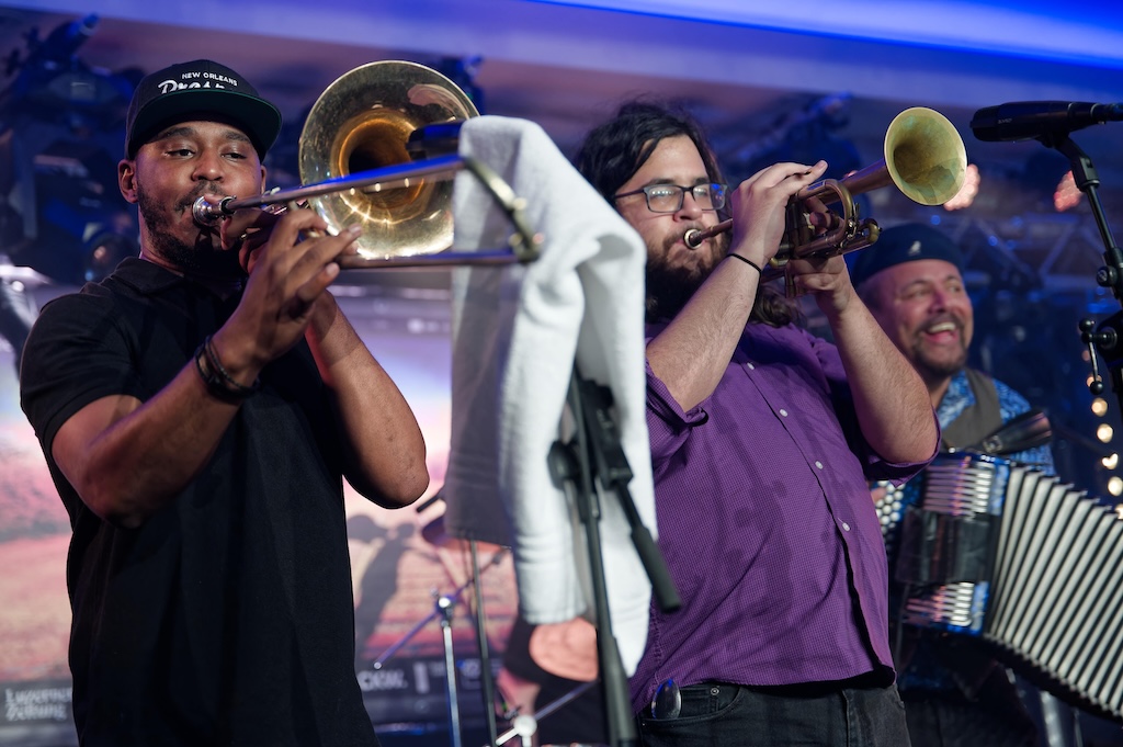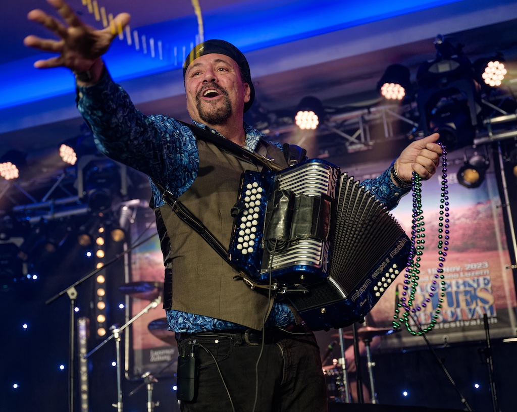 Quoi de mieux pour clôturer ces trois soirées sur la scène du Casino que de danser au rythme du zydeco de Terrance Simien and The Zydeco Experience ? Zydeco oui, mais pas seulement puisque Terrance Simien nous emmène de Lafayette à La Nouvelle-Orléans en mêlant zydeco, second line, funk et même reggae tout en nous montrant sa collection d’accordéons et en distribuant les traditionnels colliers de perles de Nola. Il descend dans la salle avec percussionniste, tromboniste et trompettiste, et embarque évidemment le public qui ne boude pas son plaisir : tout le monde se déhanche, sourires aux lèvres, profitant au maximum des derniers instants d’une édition exceptionnelle. « Bluesy regards, see you next year », comme le dira Martin Bruendler, le président de ce festival exemplaire.