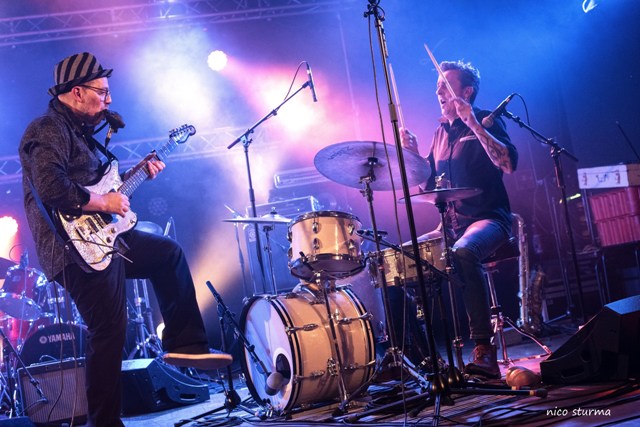 Kai Strauss and the Electric Blues Stars jouent en clôture avec un répertoire blues aux influences multiples, de Chicago au Texas en passant par le Mississippi. Moins chaleureux qu’un Victor Puertas, ils dérouleront cependant un set carré, dans lequel l’harmoniciste-saxophoniste Thomas Feldmann apporte un brin d’excentricité. Talentueux avec les deux instruments, ses solos permettent de le mettre sur le devant de la scène à côté de Kai Strauss.