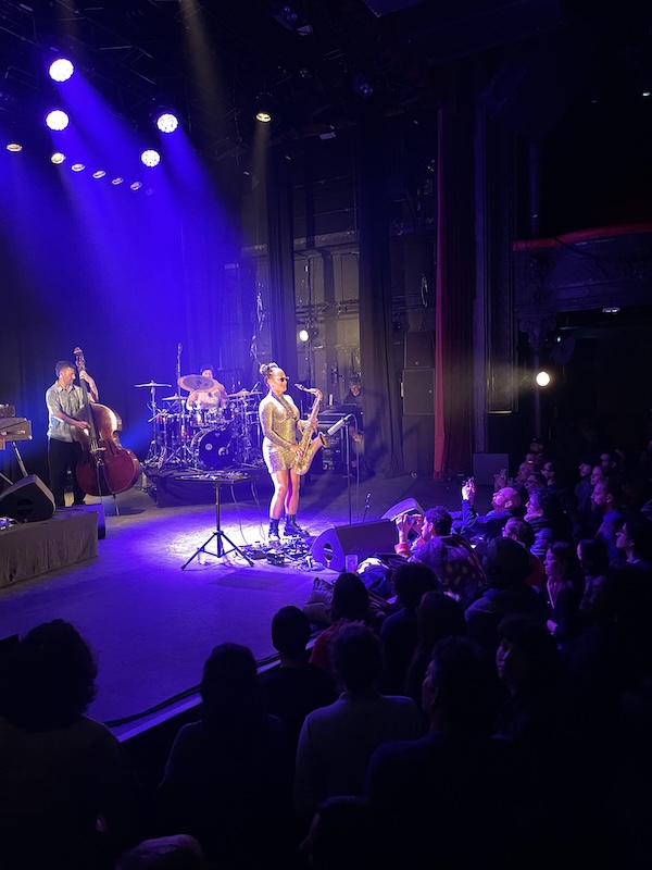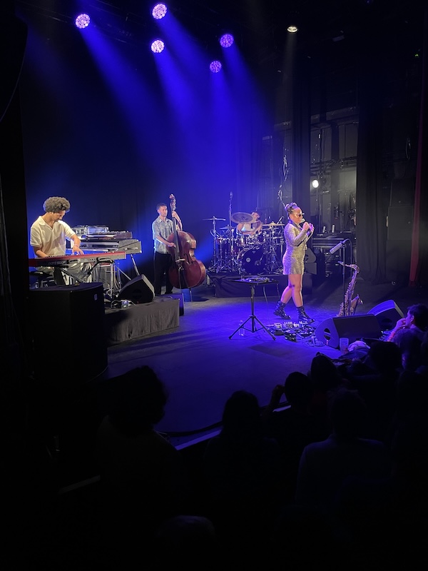 Loquace et charismatique, elle profite d’être pour une fois tête d’affiche pour prendre le temps d’expliquer sa démarche mais aussi pour saluer ses collaborateurs comme la chanteuse et productrice Georgia Anne Muldrow, avant d’interpréter en version instrumentale le Walk in gold auquel elle contribuait sur l’album. Elle mentionne également le projet artistique et social Tomorrow’s Warriors, dont sont issus nombre de musiciens de la scène britannique et dont elle explique le rôle crucial qu’il a joué dans sa carrière en lui permettant de rencontrer d’autres artistes « de mon genre et de ma couleur »
