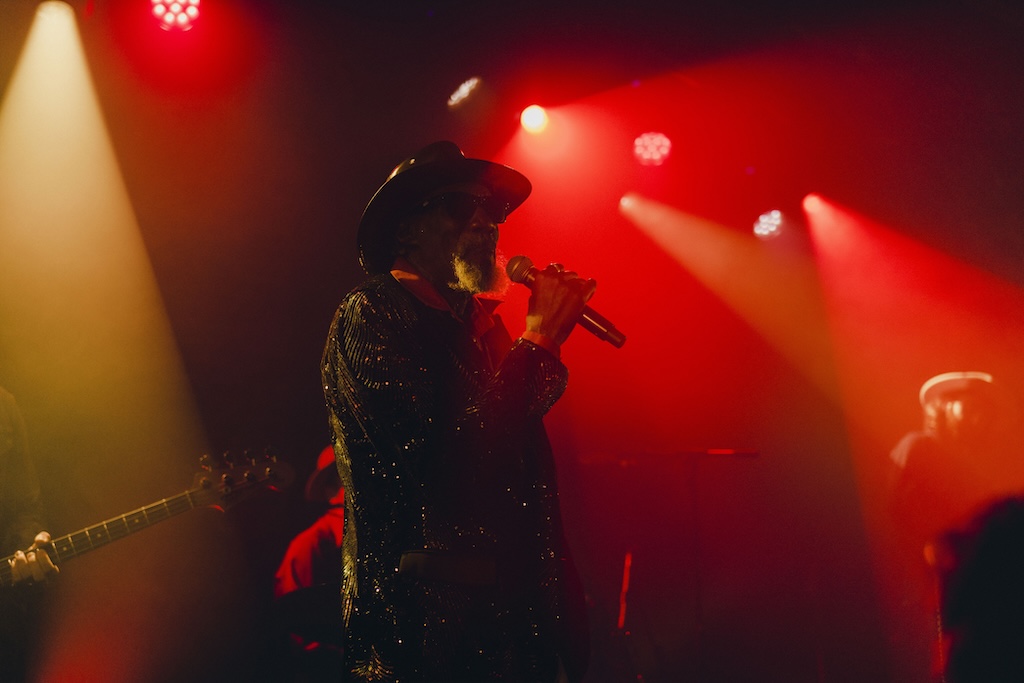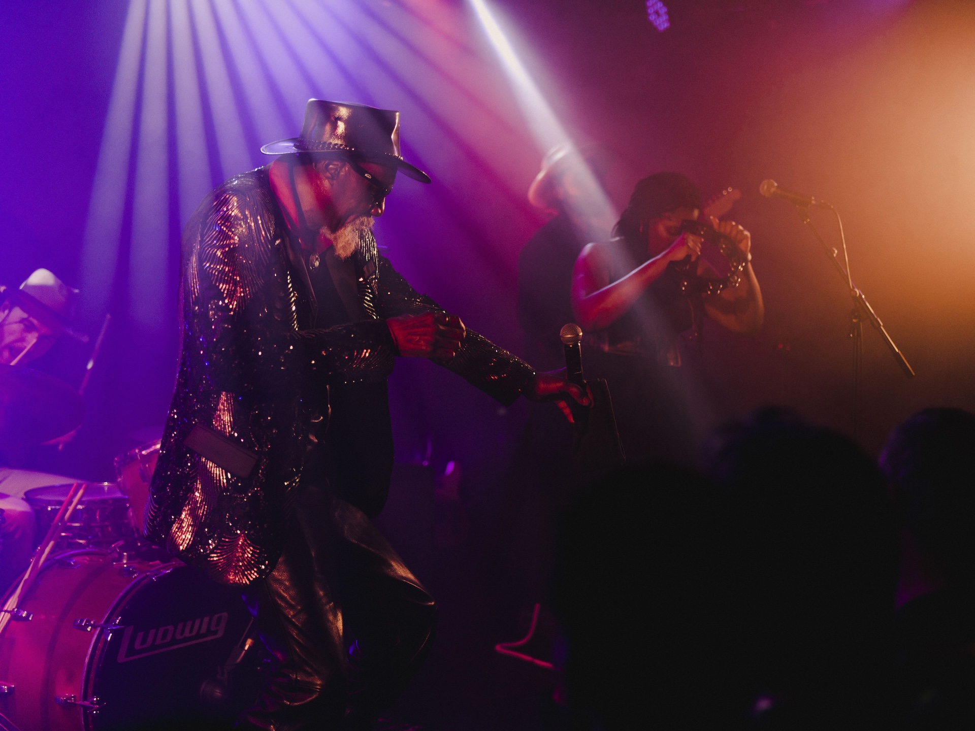 Si vous êtes lecteur ou lectrice régulier de ces pages, vous avez peut-être vu passer le compte rendu de notre collègue Christophe Mourot publié il y a quelques jours sur la prestation de Finley du côté de Saint-Nazaire. La suite de l’histoire est donc devant nous avec The Sierra Band, ce même trio de jeunes musiciens anglais qui, sur fond de rythmique nerveuse et enthousiaste, annonce la vedette qui arrive dans un costume flamboyant au bras de sa fille qui le guide jusqu’au micro.